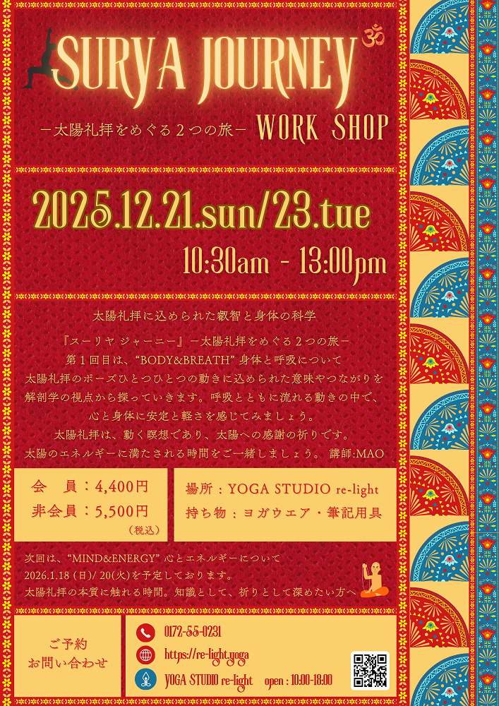 『SURYA JOURNEY』太陽礼拝ワークショップのお知らせ